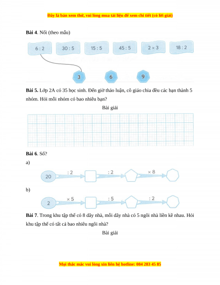 Bài 5. Lớp 2A có 35 học sinh. Đến giờ thảo luận, cô giáo chia đều các bạn thành 5