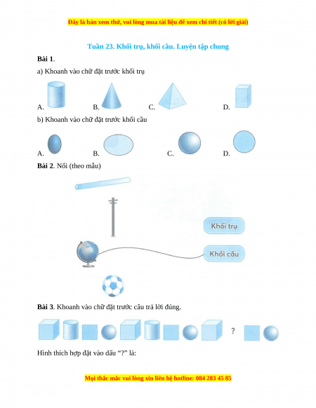 Tuần 23. Khối trụ, khối cầu. Luyện tập chung Bài 1.