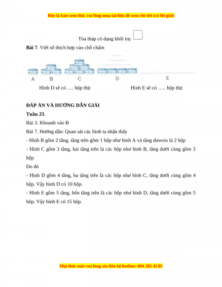 ĐÁP ÁN VÀ HƯỚNG DẪN GIẢI Tuần 23. Bài 3. Khoanh vào B