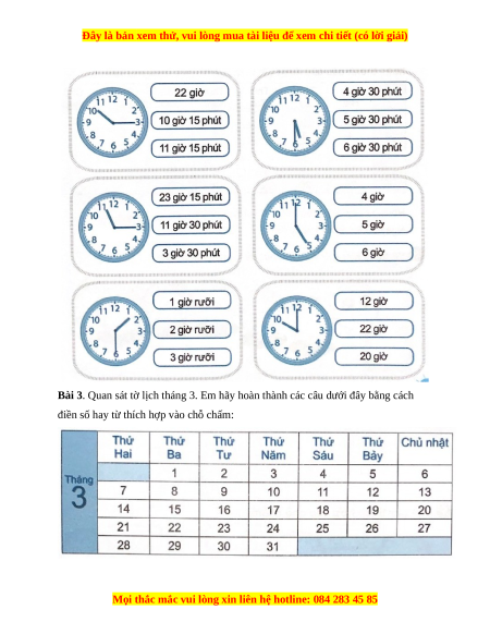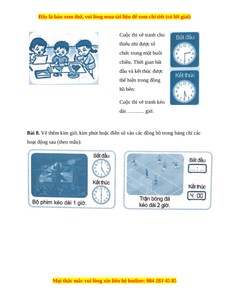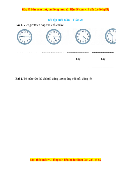 Bài 1. Viết giờ thích hợp vào chỗ chấm: …………………. …………………. …………………. …………………. hay hay