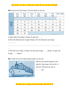 Bài 6. Quan sát tờ lịch tháng 5 rồi hoàn thành các câu sau: