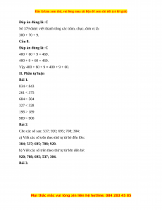 Câu 7. Số 379 được viết thành tổng các trăm, chục, đơn vị là: