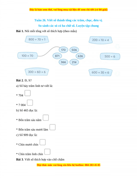 Tuần 26. Viết số thành tổng các trăm, chục, đơn vị.