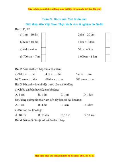Tuần 27. Đề-xi-mét. Mét. Ki-lô-mét.
