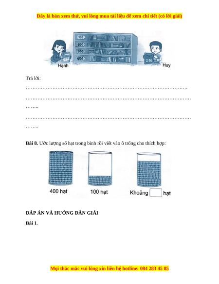 Bài 8. Ước lượng số hạt trong bình rồi viết vào ô trống cho thích hợp: