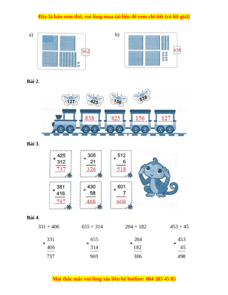 a) b) Bài 2. Bài 3. Bài 4. 331 + 406 655 + 314 204 + 182 453 + 45