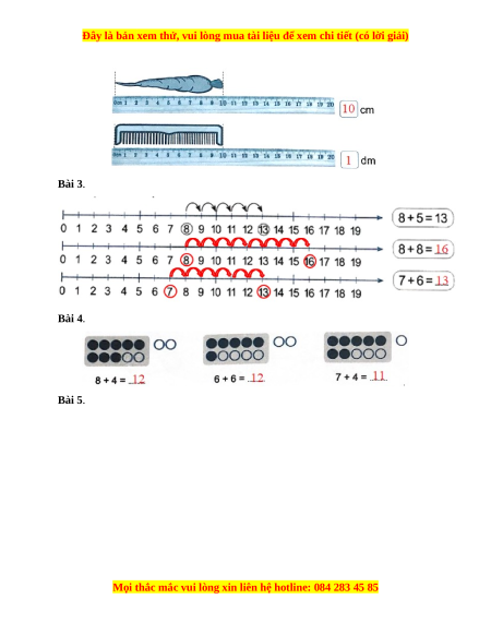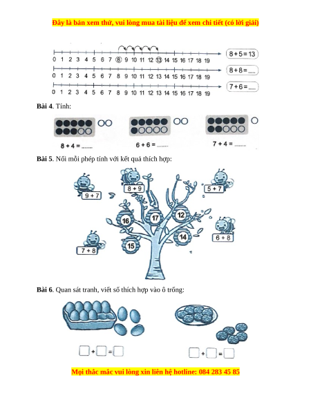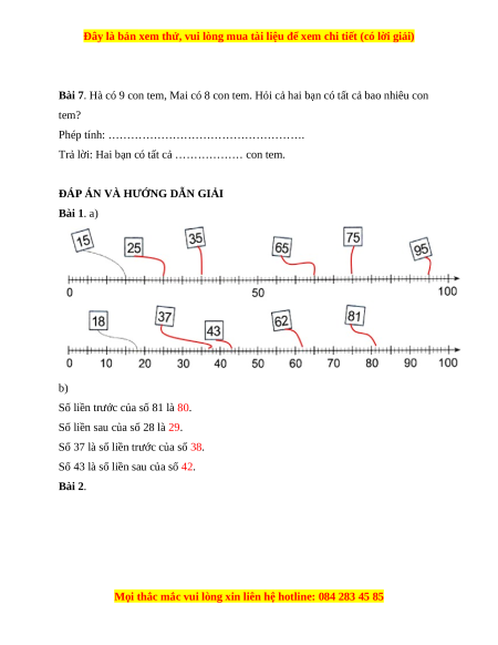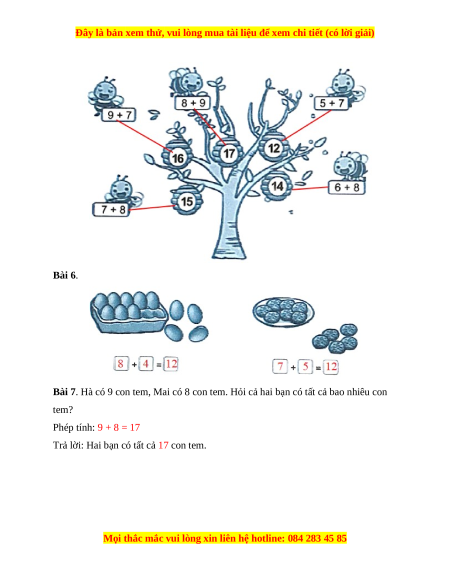 Bài 7. Hà có 9 con tem, Mai có 8 con tem. Hỏi cả hai bạn có tất cả bao nhiêu con tem?