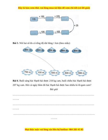 Bài 5. Nối hai số đo có tổng độ dài bằng 1 km (theo mẫu):