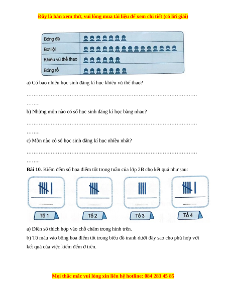 Số lượng học sinh khối lớp 2 đăng kí học các môn thể thao