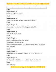 Câu 5. Hiệu của số tròn chục lớn nhất có ba chữ số và số nhỏ nhất có ba chữ số là: A. 890 B. 800 C. 880