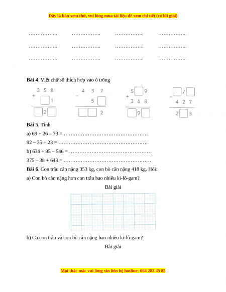 Bài 4. Viết chữ số thích hợp vào ô trống Bài 5. Tính