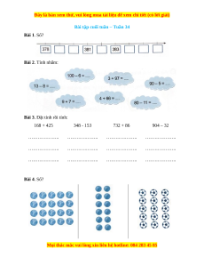 Bài 3. Đặt tính rồi tính: 168 + 425 348 - 153 732 + 86 904 – 32 ……………….. ……………….. ……………….. ……………….. ……………….. ……………….. ……………….. ……………….. ……………….. ……………….. ……………….. ……………….. Bài 4. Số?