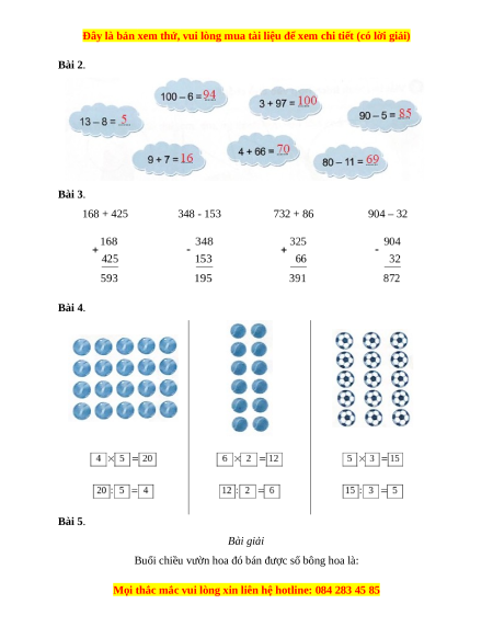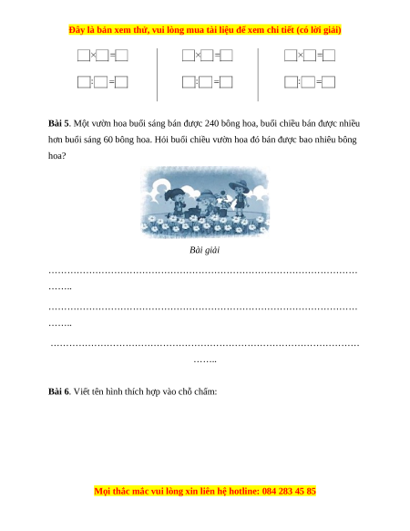 Bài 5. Một vườn hoa buổi sáng bán được 240 bông hoa, buổi chiều bán được nhiều