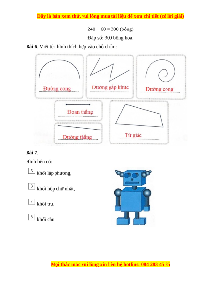 Bài 6. Viết tên hình thích hợp vào chỗ chấm: