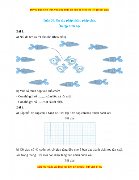Tuần 34. Ôn tập phép nhân, phép chia.