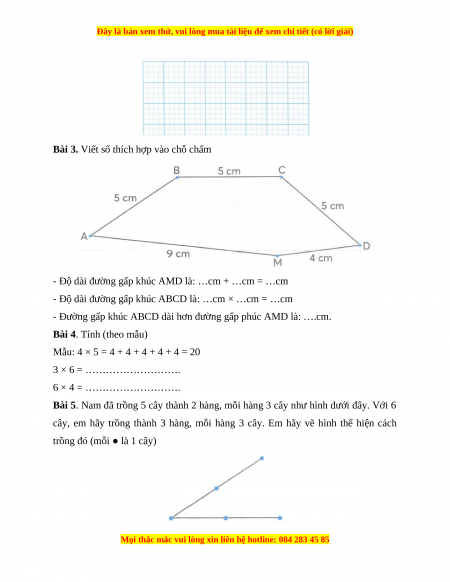 - Độ dài đường gấp khúc ABCD là: …cm × …cm = …cm