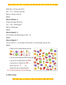 Số gạo bán ngày thứ hai là: 310 – 120 = 190 (kg gạo) Đáp số: 190 kg gạo. Câu 3. Đáp án đúng là: A