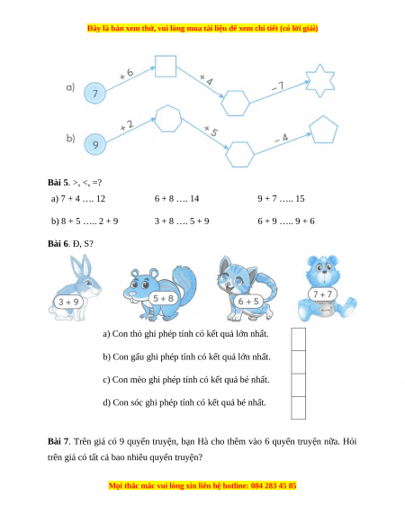Bài 7. Trên giá có 9 quyển truyện, bạn Hà cho thêm vào 6 quyển truyện nữa. Hỏi