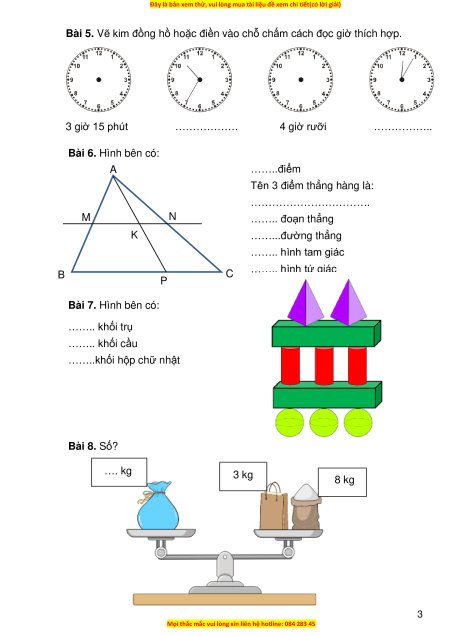 ……..khối hộp chữ nhật Bài 8. Số? …. kg 3 kg 8 kg 3