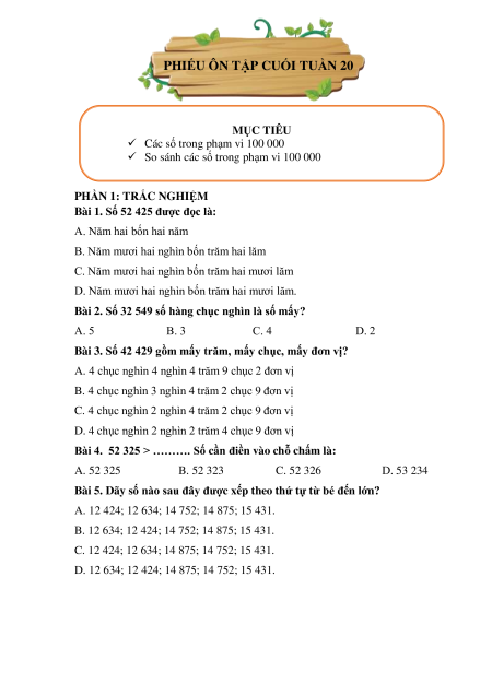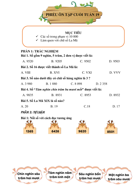 PHIẾU ÔN TẬP CUỐI TUẦN 19 MỤC TIÊU