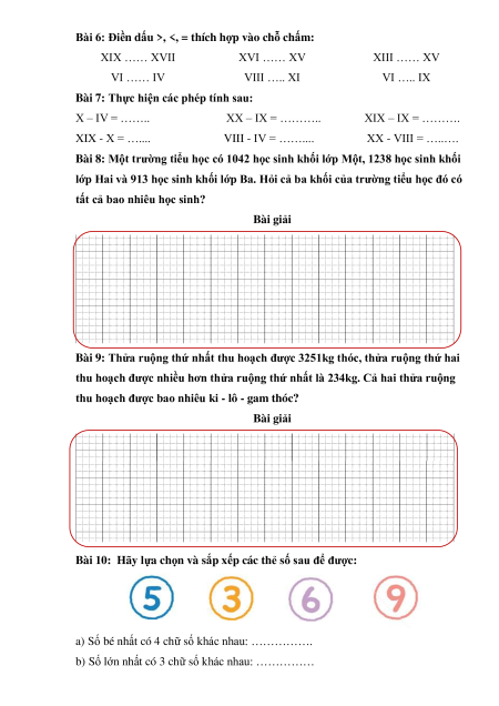Bài 7: T ự ệ á p ép tí sau: X – IV = …….. XX – IX = ……….. XIX – IX = ……….