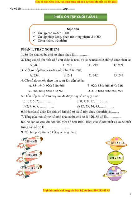 PHIẾU ÔN TẬP CUỐI TUẦN 1