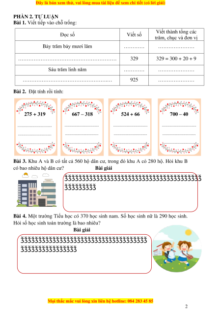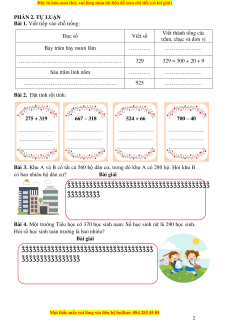 Bài 4. Một trường Tiểu học có 370 học sinh nam. Số học sinh nữ là 290 học sinh.