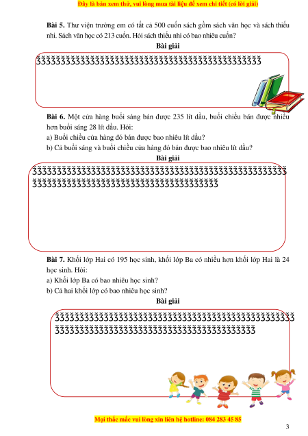 Bài 5. Thư viện trường em có tất cả 500 cuốn sách gồm sách văn học và sách thiếu