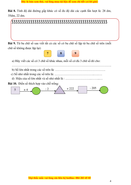 Bài 9. Từ ba chữ số sau viết tất cả các số có ba chữ số lập từ ba chữ số trên (mỗi