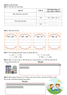 10. Nối hai phép tính có kết quả bằng nhau: 275 + 425 418+ 182 1000 - 400 314 + 386 500 - 32 329 + 139 1 PHẦN 2. TỰ LUẬN