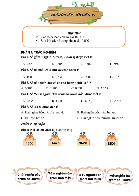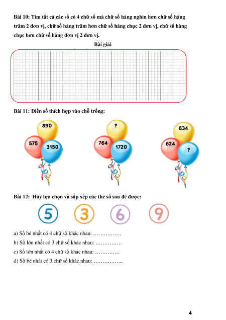 Bài 3. o d ớ ây 3 ? A. 3 980 B. 1 880 C. 8 098 D. 2 358 : A. 9835 B. 8931 C. 8953 D. 8932 Bài 5. ọ :