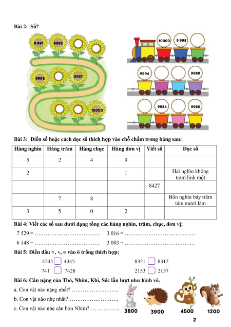 Bài 1: N i s vớ ọ ứng 1365 6426 9620 8501 C hín nghìn sáu Tám nghìn năm Sáu nghìn bốn Một nghìn ba trăm hai mươi trăm linh một trăm hai mươi trăm sáu mươi sáu lăm 1 Bài 2: S ? 10000 9 998 10 000 9 9 91 9992 9994 9988 9997 9995 9 995 9984 9980 10000