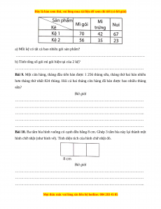Bài 9. Một cửa hàng, tháng đầu tiên bán được 1 256 thùng sữa, tháng thứ hai bán nhiều