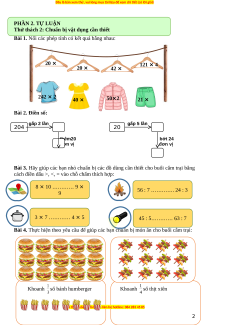 Bài 1. Nối các phép tính có kết quả bằng nhau: 20 × 121 × 4 20 × 42 × 242 × 2 40 × 50×2 21 × Bài 2. Điền số: gấp 2 lần gấp 5 lần 204 20 thêm20 bớt 24 đơn vị đơn vị