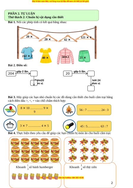 Bài 4. Thực hiện theo yêu cầu để giúp các bạn chuẩn bị món ăn cho buổi cắm trại: