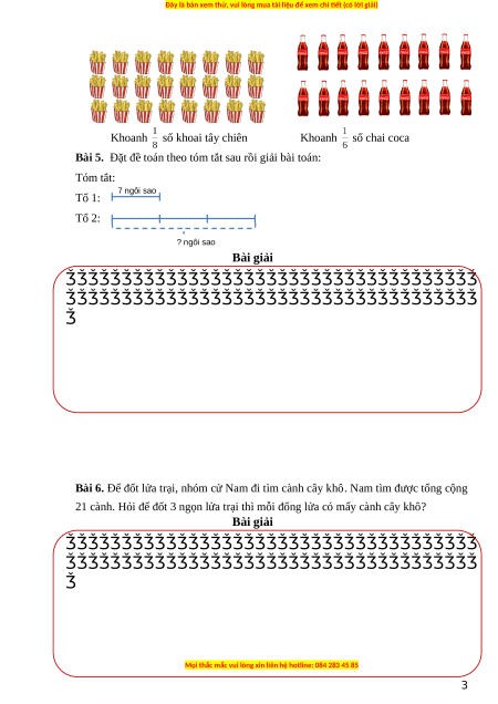 Bài 5. Đặt đề toán theo tóm tắt sau rồi giải bài toán: Tóm tắt: 7 ngôi sao Tổ 1: Tổ 2: ? ngôi sao Bài giải