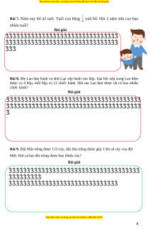 Bài 7. Năm nay bố 42 tuổi. Tuổi con bằng tuổi bố. Hỏi 2 năm nữa con bao nhiêu tuổi? Bài giải