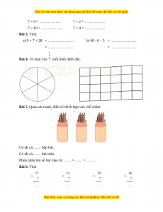 7 × 9 = …………….. 7 × 2 = …………….. 7 × 10 = …………….. 7 × 4 = …………….. Bài 3. Tính.