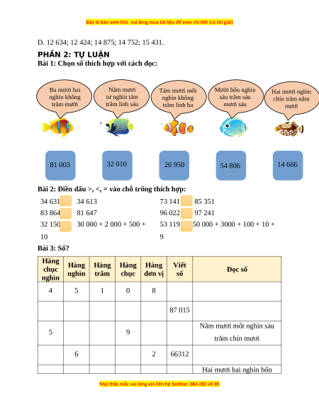 D. 12 634; 12 424; 14 875; 14 752; 15 431. PHẦN 2: TỰ LUẬN