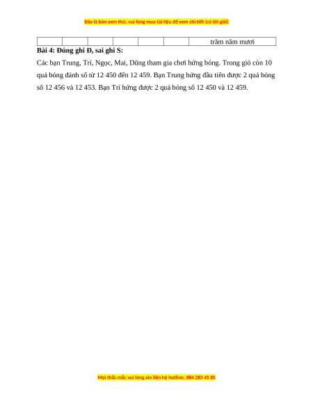 quả bóng đánh số từ 12 450 đến 12 459. Bạn Trung hứng đầu tiên được 2 quả bóng