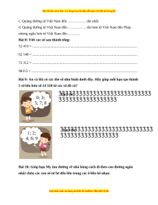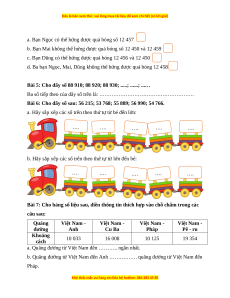 Bài 7: Cho bảng số liệu sau, điền thông tin thích hợp vào chỗ chấm trong các câu sau: Quáng Việt Nam - Việt Nam - Việt Nam - Việt Nam - đường Anh Cu Ba Pháp Pê - ru Khoảng 10 033 16 008 10 125 19 354 cách