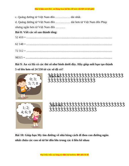 Bài 5: Cho dãy số 88 910; 88 920; 88 930; .....; ......; ...…