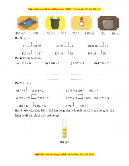 Bài 8. Một cửa hàng bán 1 925 lon bóng bàn. Nếu mỗi lon có 3 quả bóng thì cửa