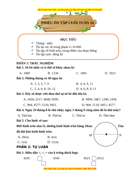 PHIẾU ÔN TẬP CUỐI TUẦN 24 MỤC TIÊU Tháng - năm