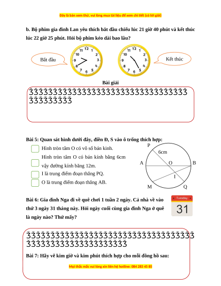 Bài 6: Gia đình Nga đi về quê chơi 1 tuần 2 ngày. Cả nhà về vào