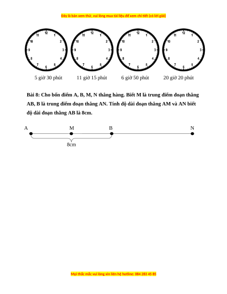 Bài 8: Cho bốn điểm A, B, M, N thẳng hàng. Biết M là trung điểm đoạn thẳng