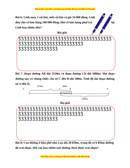 Bài 6: Linh mua 2 cái bút, mỗi cái bút có giá 34 000 đồng. Linh