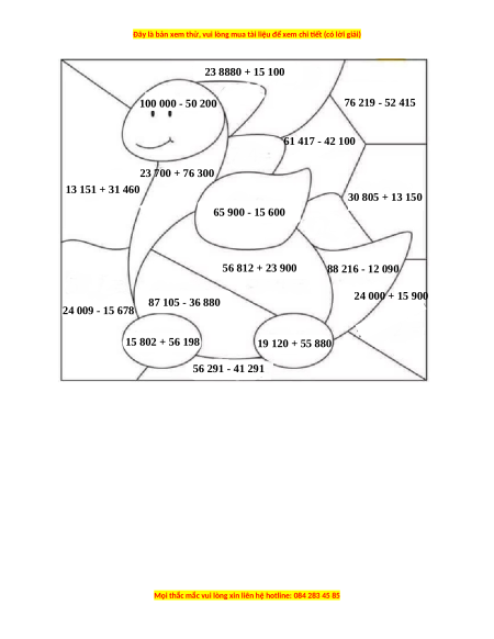Phép cộng, phép trừ trong phạm vi 100 000 PHẦN 1: TRẮC NGHIỆM