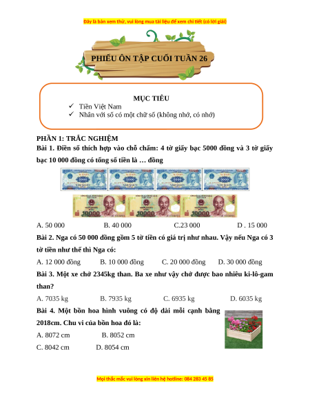 PHIẾU ÔN TẬP CUỐI TUẦN 26 MỤC TIÊU Tiền Việt Nam