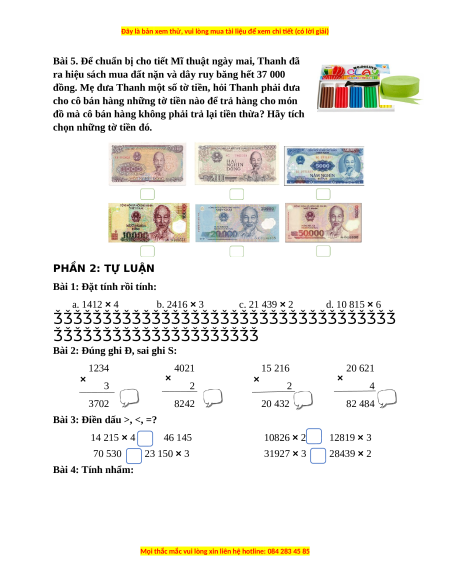 chọn những tờ tiền đó. PHẦN 2: TỰ LUẬN